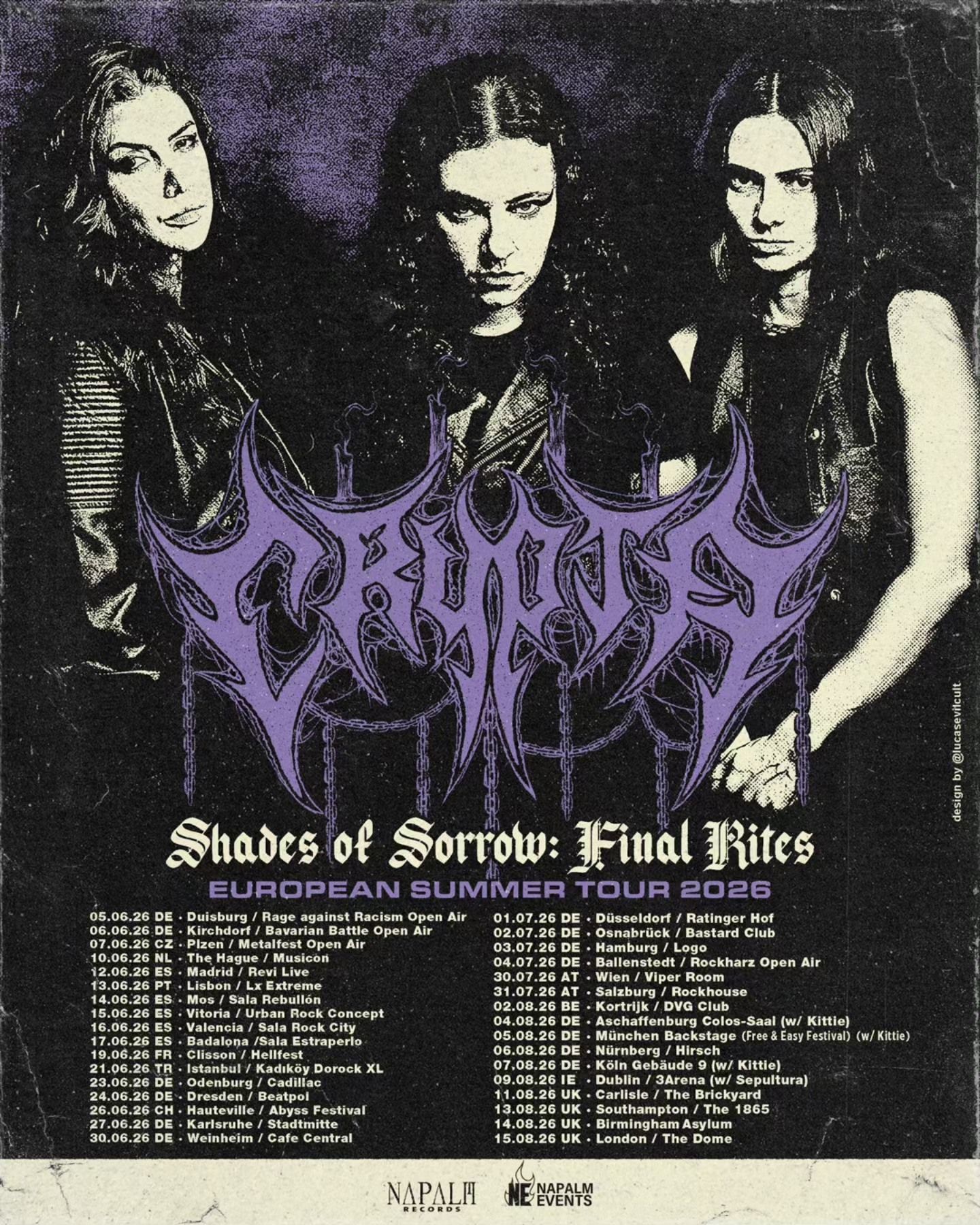Na reta final da turnê do aclamado segundo álbum “Shades of Sorrow”, a Crypta anuncia as últimas apresentações desse ciclo com a “Shades of Sorrow – Final Rites European Summer Tour”. Ao todo, serão 33 shows realizados entre os meses de junho, julho e agosto.