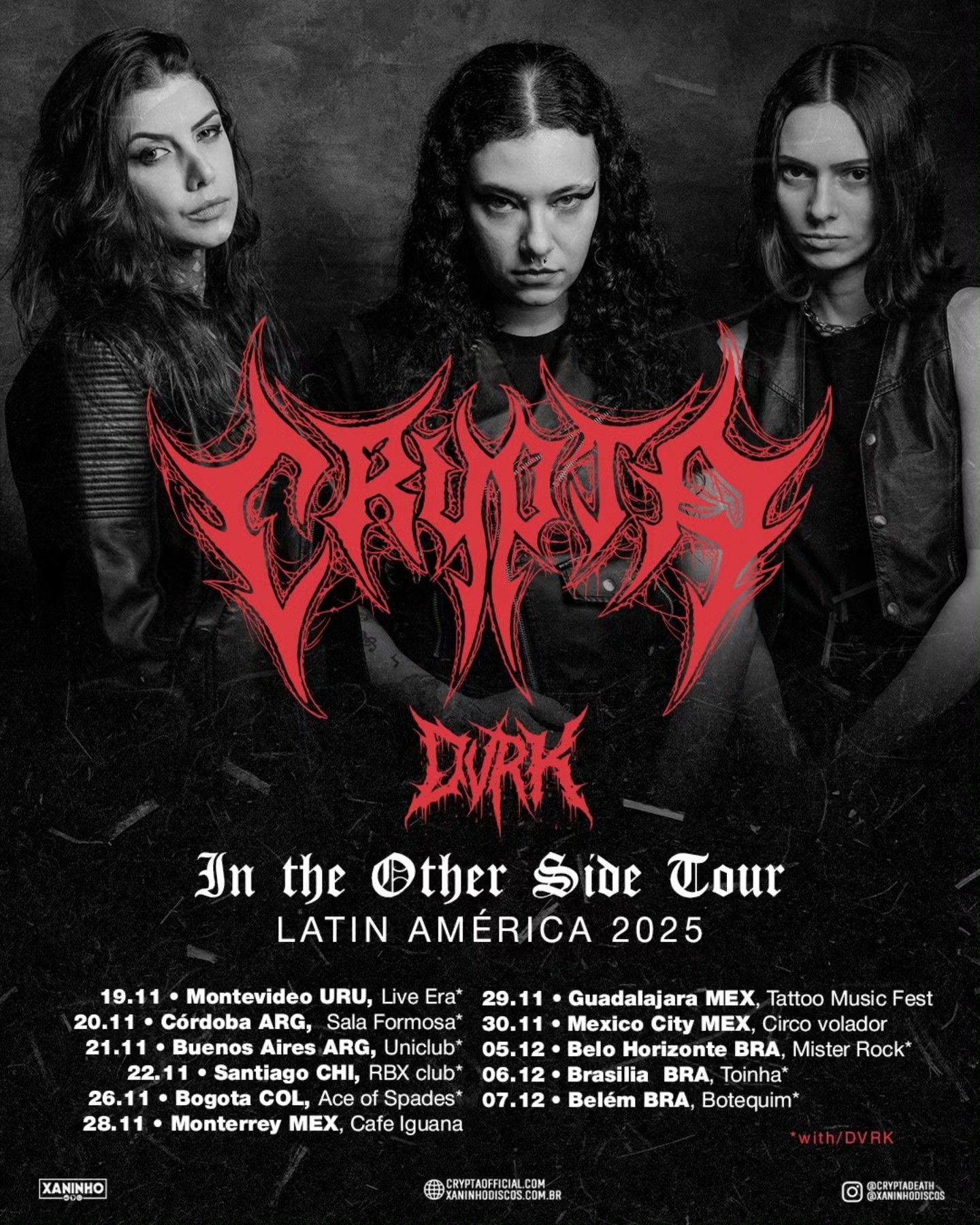 Depois de realizar mais uma tour pelos EUA, a Crypta anuncia a “In the Other Side Tour – Latin America”, com 11 datas, passando por países como Uruguai, Argentina, Chile, Colômbia, México e Brasil.
