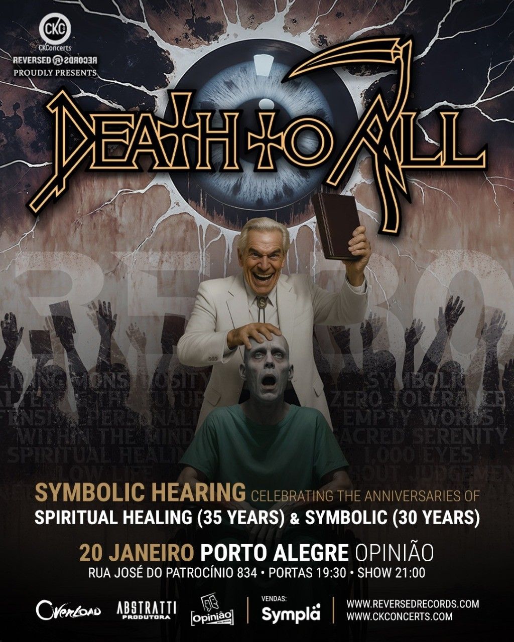 No dia 20 de janeiro, o Bar Opinião recebe a turnê "Symbolic Hearing", projeto executado pelo Death To All (DTA), tributo oficial que reúne ex-integrantes da banda Death para celebrar o legado de Chuck Schuldiner. O evento, articulado localmente pela Abstratti Produtora em parceria com a Overload, marca a celebração dupla de dois registros fundamentais para a evolução do Death Metal: os 35 anos de "Spiritual Healing" e os 30 anos de "Symbolic".
